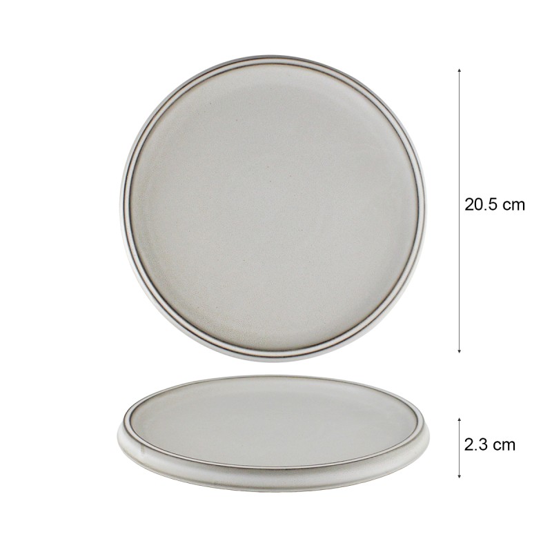 Piatto Piano in Ceramica Bianco Crema Con Doppio Bordo 20,5 cm - Collezione DaoHe