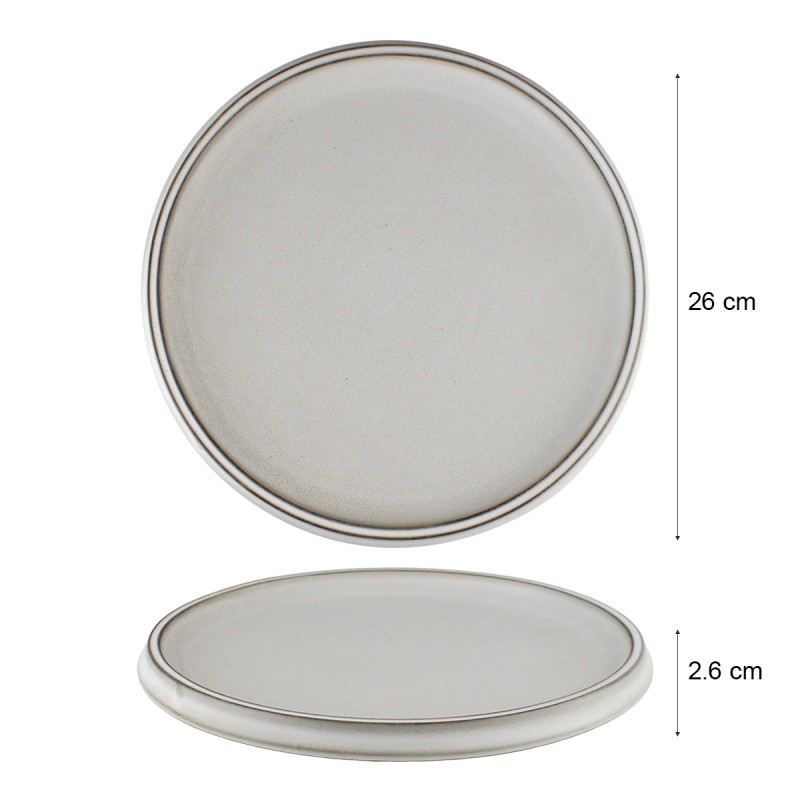 Piatto Piano in Ceramica Bianco Crema Con Doppio Bordo 26 cm - Collezione DaoHe