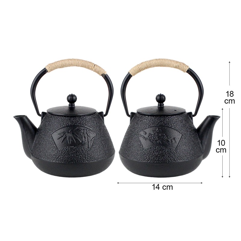 Teiera in Ghisa Nera 18 cm - Design Bambù e Fiori